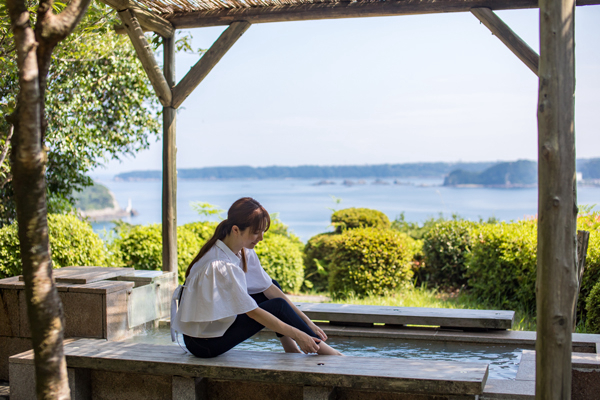 外周1.7kmほどある中の島には遊歩道があり、熊野灘が一望できるポイントで足湯が楽しめます。